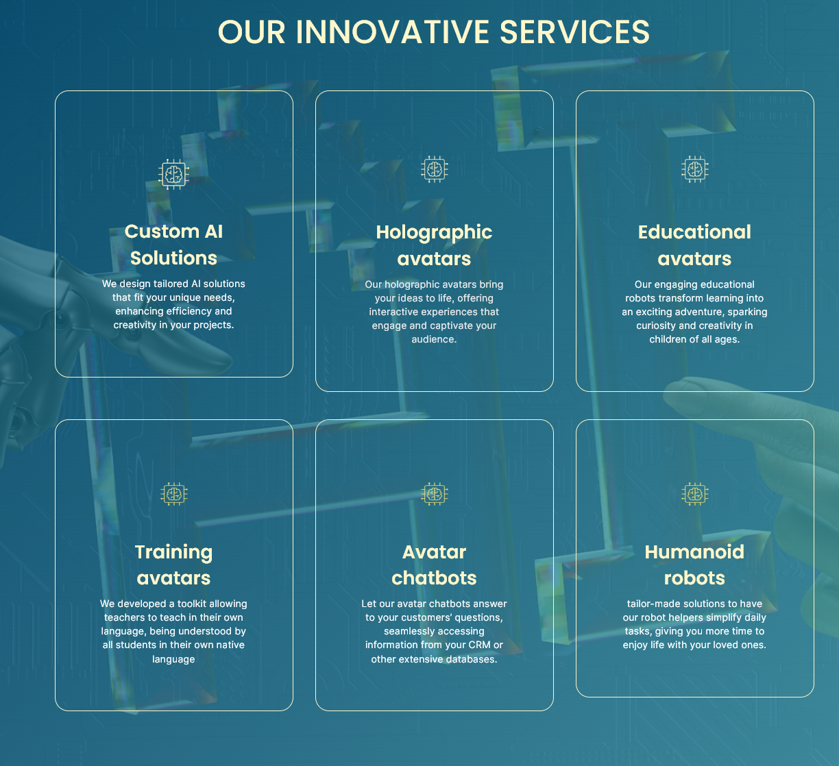 In nauwe samenwerking met het team bepaalden we een heldere technische roadmap, waarbij we generatieve AI-platforms selecteerden die pasten bij de behoeften van Bots R Here. Dit besloeg zowel de architectuur van LLM-integraties als de gebruikerservaring van digitale avatars.